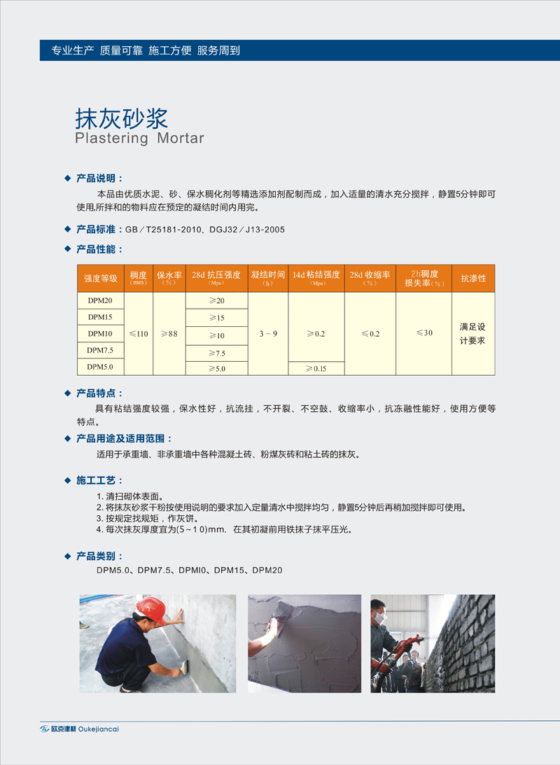 歐克建材科技常州有限公司坐落在中國燈具城之鎮(zhèn)——常州市鄒區(qū)鎮(zhèn)鶴溪村扁擔(dān)河畔,是一家經(jīng)江蘇省散裝水泥辦公室備案的預(yù)拌砂漿專業(yè)生產(chǎn)企業(yè)。并于2012年2月順利通過了ISO9001質(zhì)量管理體系認(rèn)證和ISO14001環(huán)境管理體系認(rèn)證。 公司集研發(fā)、生產(chǎn)、銷售、物流、服務(wù)于一體為客戶提供質(zhì)量穩(wěn)定、可靠的預(yù)拌砂漿產(chǎn)品。投資建設(shè)的年產(chǎn)50萬噸,具有雙烘干線的自動(dòng)化生產(chǎn)線是目前常州地區(qū)生產(chǎn)能力最大、技術(shù)含量最高、設(shè)備功能最先進(jìn)的塔樓式干混砂漿生產(chǎn)線。 公司擁有各類經(jīng)驗(yàn)豐富的專業(yè)技術(shù)人員和配置先進(jìn)的干混砂漿試驗(yàn)室,可根據(jù)用戶需要生產(chǎn)質(zhì)量穩(wěn)定可靠、施工方便高效、品種豐富多樣的普通干混砂漿。由專業(yè)技術(shù)人員組成的服務(wù)團(tuán)隊(duì),服務(wù)于工程現(xiàn)場,進(jìn)行設(shè)備巡檢與產(chǎn)品跟蹤,隨時(shí)解決施工中出現(xiàn)的問題。 “質(zhì)量為根本,信譽(yù)贏市場”是企業(yè)生存與發(fā)展的基石。目前,歐克砂漿已得到越來越多的客戶的認(rèn)可和信賴。