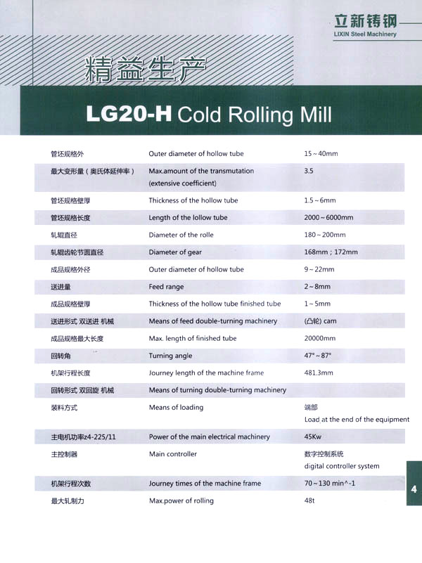 常州立新特種耐熱鑄鋼有限公司,地處江南水鄉(xiāng)古鎮(zhèn)一武進(jìn)橫林,是全國著名的強(qiáng)化地板之鄉(xiāng)。 本廠歷史悠久,技術(shù)力量雄厚,制造設(shè)備齊全。擁有先進(jìn)的鑄造生產(chǎn)線,1噸中頻感應(yīng)加熱熔煉電爐;先進(jìn)的化學(xué)分析設(shè)備和大型機(jī)床加工、埋弧堆焊機(jī)、電熱回火爐、拋丸機(jī)等。 公司依靠科學(xué)進(jìn)步,結(jié)合國外先進(jìn)技術(shù)和國內(nèi)需求,自行設(shè)計制造LGl5一H、LG20一H、LG30一H、LG40一H、LG50一H、LG60一H、LGl20一H型系列長行程環(huán)孔冷軋管機(jī)。對不銹鋼、碳鋼和有色金屬大減徑、大減壁軋制。亦可生產(chǎn)耐熱鑄鋼件、普通鑄鋼件、大型離心澆鑄件、大型軋輥堆焊等,同時可以為客戶加工生產(chǎn)大中型硬齒面齒輪及各類機(jī)械零部件備件。 公司另有焊管生產(chǎn)線1條,可生產(chǎn)直徑8—32mm的精密焊管、矩形管、冷拔管。應(yīng)用于各種燈具生產(chǎn)及其它工業(yè)生產(chǎn)。 本公司注重產(chǎn)品質(zhì)量,在同行業(yè)中率先通過了IS09000質(zhì)量體系認(rèn)證,并以優(yōu)良的服務(wù)取信于客戶。我們的宗旨是:質(zhì)量第一、信譽(yù)第一、價格合理、交貨及時,竭誠歡迎國內(nèi)外客戶來人來函聯(lián)系洽談業(yè)務(wù)、光臨指導(dǎo)!