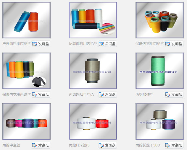 常州國星特種化纖有限公司是以環(huán)保紡織纖維為核心產(chǎn)品的大型企業(yè),為國內(nèi)產(chǎn)能最大,技術最新,質(zhì)量最優(yōu)的丙綸(聚丙烯PP)超細旦纖維生產(chǎn)廠商。 公司主營:超細旦丙綸(聚丙烯PP)纖維色絲、丙綸(聚丙烯PP)交織混紡功能面料。 本公司提供各種顏色超細旦丙綸(聚丙烯PP)長絲,可按客戶要求定制定產(chǎn)。相關產(chǎn)品規(guī)格:30D/24F ~ 300D/288F之DTY、ATY、FDY。 本公司以自產(chǎn)丙綸(聚丙烯PP)超細旦纖維色絲為依托,提供100%丙綸(聚丙烯PP)功能面料及丙綸(聚丙烯PP)交織混紡功能面料,是紡織用最新環(huán)保素材,為國內(nèi)外各大運動品牌服裝、內(nèi)衣、家紡企業(yè)之優(yōu)選供應商。 Anycool為本公司旗下超細旦聚丙烯(PP)纖維色絲注冊商標,取意自丙綸(聚丙烯PP)纖維天然特性之質(zhì)輕、性柔、親膚。 Coolast為本公司旗下丙綸(聚丙烯PP)功能面料注冊商標,取意自此種面料天然特性之導濕排汗,持久干爽 。 本公司以國外原裝成套生產(chǎn)設備為依托,資深行業(yè)專家技術指導為保障,集紡、染、織為一體,致力于環(huán)保節(jié)能紡織品研發(fā),生產(chǎn),銷售。公司先后通過ISO9001:2000質(zhì)量體系認證、OKO-TEX 國際紡織品環(huán)保認證。