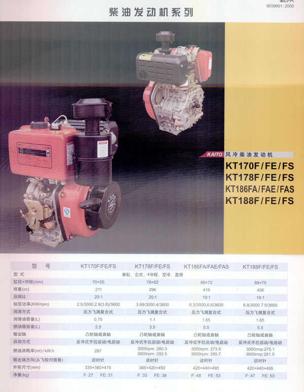 常州常柴集團凱拓電動機械有限公司是常柴集團所屬,集自主研發(fā)設計及生產(chǎn)的出口型產(chǎn)業(yè)基地! 〕2窦瘓F是一家擁有近一萬名在職員工的國有大型企業(yè),年均產(chǎn)值近三億美元,平均出口總額近八千萬美元,同時也是中國內(nèi)地五百強企業(yè)之一! 〕2窦瘓F凱拓電動機械有限公司的主要產(chǎn)品流水線基于日本YAMMAR型超級風冷柴油發(fā)動機,以及其配套發(fā)電機組,水泵機組和數(shù)碼變頻發(fā)電機,我司目前擁有常柴集團及凱拓品牌的知名商標使用權(quán),旗下所有分廠如機械加工廠、鑄造廠以及發(fā)動機廠等生產(chǎn)基地都通過了ISO9001-2000質(zhì)量管理體系認證。我司自主品牌凱拓柴油發(fā)電機組KT5000SE,KT5000LE,數(shù)碼變頻發(fā)電機KT1000Ti以及柴油發(fā)動機186F均通過德國TUV公司的CE認證,美洲EPA認證,因此出口量很大,近年來公司產(chǎn)品已遠銷美洲、歐洲、非洲以及東南亞國家和地區(qū)! ∫劳谐2窦瘓F的領先技術(shù),強有力的管理體制,以及健全的產(chǎn)品質(zhì)量體系,我司通過不斷優(yōu)化自主設計研發(fā),完善管理機制,期望能夠以提供最優(yōu)質(zhì)的產(chǎn)品售后服務進一步拓展國際市場。 本著“團結(jié)、合作、奮斗”的公司理念,我們希望著眼全球,與更多潛在的客戶開展合作交流,最終實現(xiàn)雙贏的戰(zhàn)略目標。