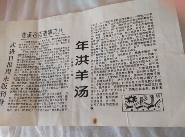 焦溪羊肉遠(yuǎn)近聞名,然而,食客中鮮有關(guān)注焦溪羊肉之加工鏈的。如今,焦溪的羊肉經(jīng)營(yíng),從活羊采購(gòu),到屠宰、分割、羊雜處理、烹飪、上桌,其分工已經(jīng)細(xì)化。在焦溪從事活羊屠宰的,多數(shù)是江陰南閘人。宰殺后去頭的肥羊,個(gè)頭不亞于百斤開外的優(yōu)質(zhì)肉豬,皮色白凈、肉質(zhì)鮮亮,經(jīng)過(guò)精心的烹飪,最終成為道道佳肴。