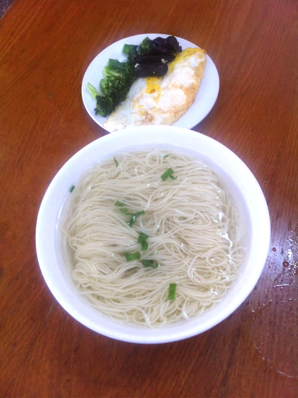 武進人愛吃面,已經是人盡皆知。而說起武進人最愛吃哪種面,估計十個中有八個會說腸腸面。位于禮嘉鎮(zhèn)上的新八佰碗面館,就是以腸腸面在武進面界擁有了眾多粉絲。 比起大部分武進的家常面館,新八佰碗面館的門面還是挺大的,寬敞的廳堂里擺放著近10張桌子。中午11點不到,由于還沒到飯點,店里的客人并不多。著裝清爽的老板娘顧紅梅正在后面的灶間里忙著炒菜!澳銊e看現在我們店里沒人,再過半小時,人馬上就多起來了。早上9點前,好多人都是站著把面吃完的! 顧紅梅坦言,面館有如此好的生意,著實有點意外,但也在情理之中。 新八佰碗面館的前身也是一家面館,但是因為種種原因,最終在3年前關門大吉!捌鋵嵜骛^的市口很不錯,但我接手的時候,前任老板跟我說,一天只能做20斤面的生意!彪m然壓力很大,但顧紅梅表示,從一開始她就對面館充滿信心,“我一直覺得只要用心,沒有做不好的事! 新八佰碗面館的面是老武進的做法,一碗面,三種做法,要么紅湯、要么白湯,還有紅湯拌面,翻花樣的是上面的澆頭。每天清晨3點半,顧紅梅就會準時到店里,首先是煮湯底。“我們面館的湯料頭很足,用大骨頭、老母雞、開洋等足足燉夠3小時!苯又,就是做各種澆頭。由于一向擅長做菜,因此有很多澆頭都是顧紅梅親自掌勺。新八佰碗面館的澆頭,除了味美,量也是足得讓食客們直呼“老板要虧本了”!熬湍梦溥M人最喜歡吃的大肉來說,足足是別人店里的兩倍大。每次我切肉的時候,我老公總在旁邊念叨,大點,再大點。”顧紅梅笑著說道。 早上6點不到,面館就會迎來第一批客人。雖然店里雇了工人,但顧紅梅只要有空,都會搶著收拾碗筷!案鶕腿藗兂缘牧浚揖椭烂婧喜缓纤麄兊目谖读。有時看到客人剩的特別多,我就會拉著問是不是不好吃。只要客人們提到的意見,我肯定一字不落地記下來,然后在以后的制作過程中一一改進。對于很多武進人而言, 一碗面,裝載的是小日子、小樂活,所以我必須把面做好吃嘍。”顧紅梅的如此用心,不由讓記者豎起了大拇指。 就這樣,一開始的20斤面量,一個月后就增加到了40斤,而現在最忙的時候,一天要用掉近100斤面。 說起招牌面,顧紅梅指了指墻上的菜單,“喏,寫在那呢,腸腸面!泵媸羌毭妫嶂袔,湯底濃油赤醬,看似很咸,其實不然,回味恰到好處。大腸處理得很干凈,腸腔里的油花幾乎都被去除了,糯糯的卻不見肥,再加一塊素雞或荷包蛋,武進人喜歡的味道,這一碗面里就齊全了。
