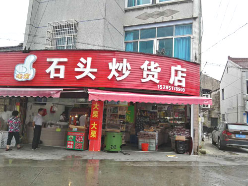 湖塘花東街上的“石頭炒貨店”是20多年的老字號(hào)了。上個(gè)世紀(jì)90年代,二十郎當(dāng)歲的“石頭”一一石愛(ài)軍從徐州來(lái)到武進(jìn),就在這條街上擺了個(gè)炒貨攤!皫灼椒矫椎男〉?cái)偅吷霞軅(gè)大鐵鍋,炒出的瓜子、花生、蠶豆,鋪在竹篾上篩過(guò)、冷卻后就可以賣了!笔瘣(ài)軍回憶,街坊鄰里冒著冬日的嚴(yán)寒,擠在地?cái)偳皣L著剛出鍋的瓜子的場(chǎng)景,還歷歷在目。20多年過(guò)去了,鄰居們都成了最熟悉的親人,從年輕姑娘到抱著孫子的老人,大家還是最愛(ài)吃石頭炒的瓜子。而炒貨店的店面也擴(kuò)大了,并且在湖塘另開(kāi)了多家分店。 生意最好的還是花東街上的老店。不大的店面,被一袋袋瓜子、花生、蠶豆、核桃堆得滿滿的,空氣里也滿滿都是堅(jiān)果的香氣。超大瓜子唇齒留香,去皮瓜子鮮香入昧,南瓜子皮薄肉厚,還有開(kāi)心果、手剝松子、小油果、核桃、碧根果、小黃豆,以及炒米糕、蛋卷、麻松條、紫薯干、地瓜干、山芋片、鍋巴、芝麻糖、山楂、麻花、葡萄干….這么多美昧都是老板親手制作。愛(ài)吃點(diǎn)什么,就用一 長(zhǎng)柄勺鏟點(diǎn)兒什么,最質(zhì)樸簡(jiǎn)單的包裝袋里,裝著的是屬于這條老街居民記憶里的味道,穿過(guò)幾十年的時(shí)光,仍然鮮活生動(dòng)地銘刻在每一個(gè)人的里。 “少東家”石榮沖就是在這個(gè)老店、這條老街長(zhǎng)大的。他說(shuō)目前自己炒瓜子的技藝還沒(méi)到火候,還在跟著父親學(xué)習(xí)的階段。”挑選原料、炒制工序,每一步都有學(xué)問(wèn)在里頭!蹦玫陜(nèi)的銷售冠軍“內(nèi)蒙大瓜子”來(lái)說(shuō),這種來(lái)自內(nèi)蒙、經(jīng)過(guò)充足日照的葵花子每顆長(zhǎng)度近2厘米,個(gè)頭特別大,也十分飽滿。拈一顆大瓜子,就連嗑起來(lái)的聲音也分外清脆。外皮很容易與內(nèi)仁剝離,碩大的瓜子仁口感十分香脆,與別家作料用得很足、吃起來(lái)特別鮮咸的瓜子不同,這種大瓜子更注重烘托原昧,淡淡的咸昧在舌尖掠過(guò),剩余的都是屬于瓜子的天然香甜。