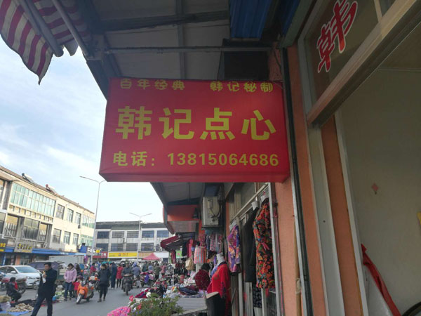兩年前,韓效慶回到家鄉(xiāng),在農(nóng)貿(mào)市場(chǎng)租店面開(kāi)了點(diǎn)心坊,這里也成了市場(chǎng)上最熱鬧的一家店鋪。