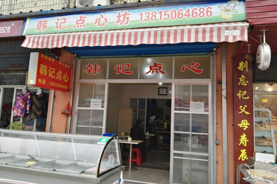 靠近市場(chǎng)的一排店面房,聞著隱約飄出的芝麻香,記者找到了坐落其中的韓記點(diǎn)心坊。