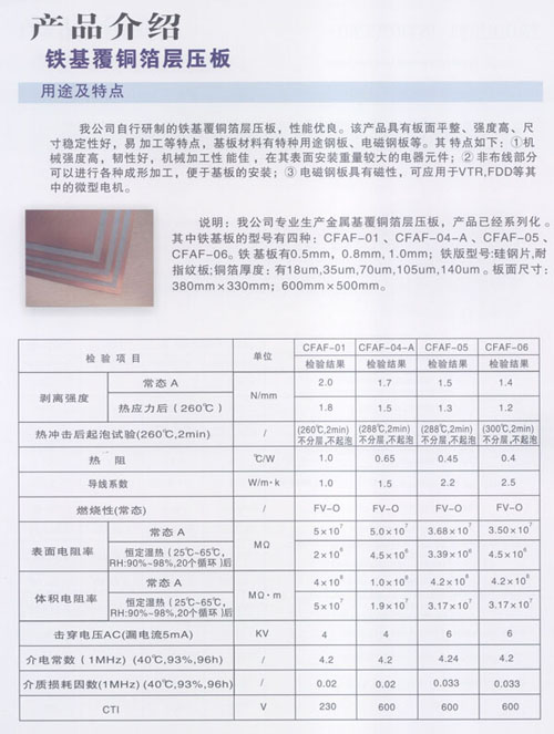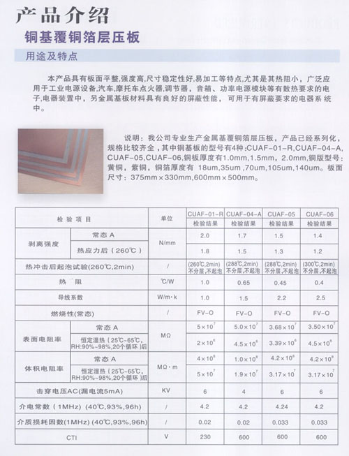 本公司是一家專(zhuān)業(yè)從事研發(fā)、生產(chǎn)金屬基(鋁基、鐵基、銅基)覆銅箔層壓板的民營(yíng)科技企業(yè)。公司位于江蘇省常州市新北區(qū)春江鎮(zhèn),京滬高速鐵路火車(chē)站落戶(hù)本地區(qū),相距8Km,滬寧高速公路出口相距8Km,常州民航機(jī)場(chǎng)相距18Km,交通便捷,環(huán)境優(yōu)美。 公司占地面積18000㎡,廠(chǎng)房面積38000㎡,員工300多人,金屬基覆銅板和金屬基印制板的年產(chǎn)能分別為800,000㎡和380,000㎡。公司技術(shù)力量雄厚,其中高級(jí)工程師20名,技術(shù)人員50名,并與本地大學(xué)掛鉤。公司擁有全套的金屬基覆銅箔層壓板檢驗(yàn)設(shè)備。自主開(kāi)發(fā)的產(chǎn)品并獲得國(guó)家實(shí)用新型專(zhuān)利,專(zhuān)利號(hào):ZL200620165311.4、ZL200820185660.1、ZL200920035286.1、ZL200920255499.5、ZL200920284561.3。 以及多項(xiàng)發(fā)明專(zhuān)利,專(zhuān)利號(hào):ZL 200910026210.7、申請(qǐng)?zhí)枺?00910234775.4。自主開(kāi)發(fā)的散熱器基覆銅箔印制電路板層壓板,已申請(qǐng)發(fā)明專(zhuān)利,申請(qǐng)?zhí)枺?00910184663.2。 金屬基覆銅箔層壓板的特點(diǎn)就是高散熱,低熱阻,散熱效果特別好! 公司生產(chǎn)的CCAF-01型鋁基覆銅箔層壓板,熱阻為1.0℃/W,熱導(dǎo)率為1.0W/m·K;CCAF-04-A型鋁基覆銅箔層壓板,熱阻為0.65℃/W,熱導(dǎo)率為1.3~1.5W/m·K;CCAF-05型鋁基覆銅箔層壓板,熱阻為0.45℃/W,熱導(dǎo)率為2.0~2.2W/m·K,CCAF-06型鋁基覆銅箔層壓板,熱阻為:0.4℃/W,熱導(dǎo)率為2.5~2.8W/m·K。接近國(guó)際先進(jìn)水平,自主開(kāi)發(fā)的散熱器基覆銅箔印制電路板層壓板,填補(bǔ)國(guó)內(nèi)空白。公司生產(chǎn)的鋁基覆銅箔板廣泛應(yīng)用于汽車(chē)點(diǎn)火器、摩托車(chē)調(diào)壓器、音箱模塊電源、通訊模塊電源、變頻模塊電源;各種大功率LED工程景觀照明:洗墻燈、投光燈、草坪燈、水底燈、噴泉燈、路燈、室內(nèi)照明、長(zhǎng)1.2米LED照明燈、手電筒及液晶顯示器等。 鐵基覆銅箔板廣泛用于微型電機(jī)和馬達(dá)驅(qū)動(dòng)器等。 銅基覆銅箔板應(yīng)用于太陽(yáng)能電站和軍工產(chǎn)品。 公司產(chǎn)品在深得國(guó)內(nèi)多數(shù)知名企業(yè)(海爾,海信,京東方等)認(rèn)可選用的同時(shí)還遠(yuǎn)銷(xiāo)海外,美國(guó)、德國(guó)、土耳其、芬蘭、意大利、法國(guó)、菲律賓、印度、馬來(lái)西亞、新加坡、日本、韓國(guó)及中國(guó)的港臺(tái)地區(qū)等。 公司產(chǎn)品已獲得UL全性能認(rèn)證,檔案號(hào):覆銅板E250901,印制板E348435;CQC安全認(rèn)證和ISO9001:2008質(zhì)量管理體系認(rèn)證,ISO14001:2004環(huán)境管理體系認(rèn)證。 客戶(hù)的需要是我們不懈的追求,公司將以先進(jìn)的技術(shù),科學(xué)的管理,良好的質(zhì)量,優(yōu)惠的價(jià)格為新老客戶(hù)提供精良的服務(wù)!