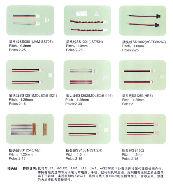常州市匯創(chuàng)電子有限公司我公司2000年8月成立.端子連接線生產(chǎn)有10余年的經(jīng)驗(yàn).結(jié)合韓國連接線生產(chǎn)技術(shù),致力于筆記本電腦,手機(jī),數(shù)碼相機(jī)等高端行業(yè)的小間距的端子連接線的研究和生產(chǎn).小間距端子連接線的插頭的常規(guī)型號有 SH/1.0mm, 51021-0200/1.25mm, ZH , PH, EH, XH, SAN, SCN, 2510 等.特殊插頭型號有:02SUR-32S,02SSR-32H.材料用原廠進(jìn)口的JST, MOLEX,或臺資廠家的(根據(jù)客戶需要).全環(huán)保,無鉛化生產(chǎn).2008年開始導(dǎo)入無鹵素要求。企業(yè)已經(jīng)通過ISO9001-2000質(zhì)量管理體系.質(zhì)量好!交貨快!價(jià)格合理!是目前常州AAC等多家大型受話器廠家的優(yōu)秀供應(yīng)商.客戶遍及常州周邊,蘇州,昆山,上海,深圳,嘉興,山東,重慶等地.也有直接出口韓國,臺灣.現(xiàn)有高素質(zhì)員工100人左右.廠房面積2000平方米.
