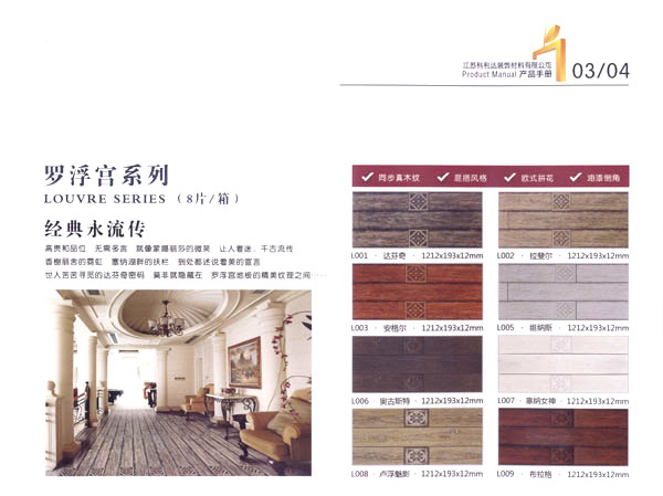 “科利達(dá)”品牌(央視上榜品牌)與四屆金馬金像影帝——梁家輝攜手合作,曾獲得國家免檢產(chǎn)品、江蘇名牌等眾多榮譽(yù)稱號,還被評為中國木地板行業(yè)最具市場影響力的優(yōu)秀品牌、“中國最具競爭力地板品牌”。同時,科利達(dá)商標(biāo)已在德國、澳大利亞等全球諸多國家正式注冊,科利達(dá)的產(chǎn)品不僅在國內(nèi)建立了500多家專業(yè)服務(wù)機(jī)構(gòu),還遠(yuǎn)銷歐美、東南亞、俄羅斯、印度、土耳其、哥倫比亞等五十多個國家和地區(qū),出口總量超過8000萬平方米,在海內(nèi)外享有廣泛的影響和良好贊譽(yù)。科利達(dá)把“引領(lǐng)潮流,美化世界”作為自己義不容辭的歷史使命!