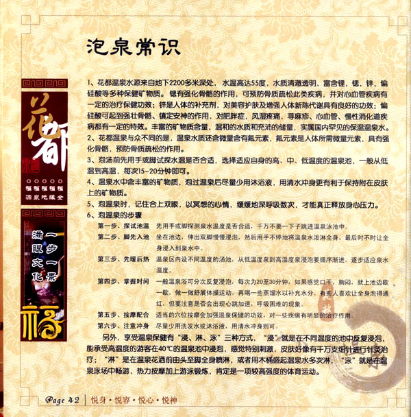 淹城花都溫泉水城孕育天地之精華,悅身、悅?cè)、悅心、悅神。置身其中泉水潺潺,霧氣繚繞、花瓣飄香,恍若仙境。“掬水月在手,弄花香滿衣”,花都溫泉的浪漫與溫潤(rùn)在這里完美展現(xiàn)。 花都溫泉水城包括洗浴區(qū)、戲水世界、露天溫泉、自助餐廳、生態(tài)房、別墅區(qū)、紅文化房、VIP區(qū)等多種功能區(qū)域,是集溫泉養(yǎng)生、休閑住宿、演藝會(huì)務(wù)為—體的休閑度假勝地,給賓客帶來(lái)江南小鎮(zhèn)的浪漫水城之旅。 古木新枝畔賓客對(duì)酒當(dāng)歌,溪泉石椅旁把茶品啜。 淹城-三勤生態(tài)酒店,這里是一處綠色生態(tài)的美食家園。此地鬼斧神工.奇水異石,和風(fēng)細(xì)雨林中穿過(guò),引百鳥朝來(lái)暮歌;這里集生態(tài)餐飲、演藝、中小型會(huì)務(wù)為一體,將現(xiàn)代裝飾風(fēng)格和古雅拙樸的自然裝修完美整合;這里聚集大江南北名廚,推出精致綠色美昧佳肴。來(lái)到這里,賓客可享田園至美之景,品舌尖至鮮之味,實(shí)乃人生一大樂(lè)事。