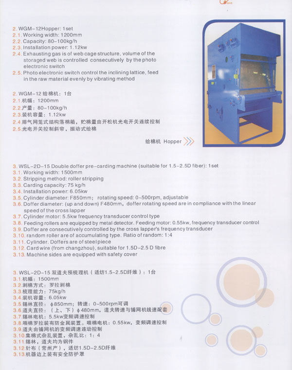 常州市祺科機(jī)械制造有限公司暨常州市武進(jìn)無(wú)紡機(jī)械設(shè)備有限公司多年來(lái)致力于各種機(jī)械產(chǎn)品的研制和開發(fā),1990年始即成為我國(guó)較早生產(chǎn)無(wú)紡機(jī)械設(shè)備和制品的專業(yè)廠家,技術(shù)力量雄厚,公司生產(chǎn)的成套設(shè)備有:浸膠、熱軋、針刺、無(wú)膠棉、噴膠棉等傳統(tǒng)無(wú)紡布生產(chǎn)線。新近開發(fā)了高速雜亂梳理機(jī),梳理木漿復(fù)合水刺生產(chǎn)線,氣流純棉水刺生產(chǎn)線等。
