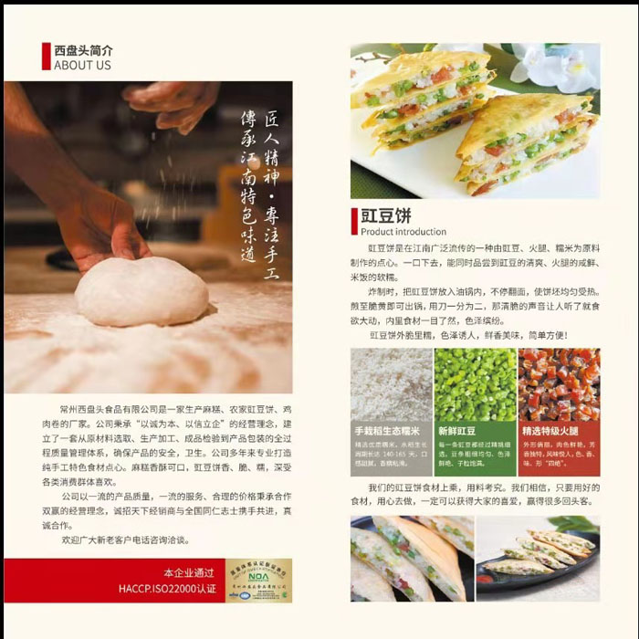 常州西盤頭食品有限公司是一家專業(yè)生產(chǎn)農(nóng)家豇豆餅的廠家。公司秉承“以誠為本、以信立企”的經(jīng)營 理念,建立了一套從原材料選取、生產(chǎn)加工、成品檢驗到產(chǎn)品包裝的全過程質(zhì)量管理體系,確保產(chǎn)品的安全 ,衛(wèi)生。公司多年來專業(yè)打造純手工特色食材點心。豇豆餅香,脆、糯的口感深受各類群體喜歡。
