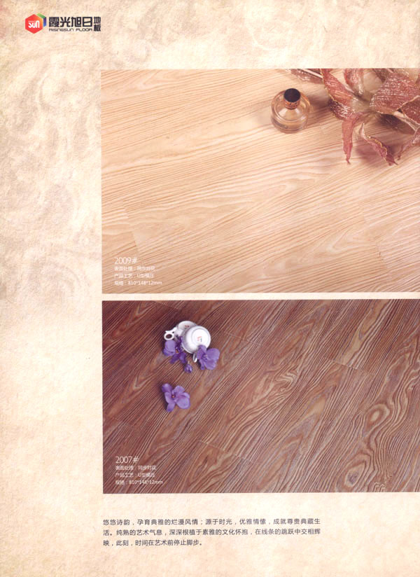 公司旗下“霞光.旭日”品牌地板系列由旭日皇家、旭日經(jīng)典、旭日戀家、至尊奢華、巧奪天工、水晶陶瓷等幾個(gè)系列構(gòu)成,配有專職質(zhì)量檢驗(yàn)人員,嚴(yán)把產(chǎn)品質(zhì)量關(guān),不斷完善產(chǎn)品質(zhì)量體系、監(jiān)控管理體系。公司對(duì)客戶需求全面、科學(xué)、準(zhǔn)確地把握,確保對(duì)客戶市場(chǎng)適時(shí)高效反應(yīng)。一流的設(shè)備、精心的選材、完美的工藝以及對(duì)產(chǎn)品品味不倦的追求,令奔公司產(chǎn)品獨(dú)樹(shù)一幟。