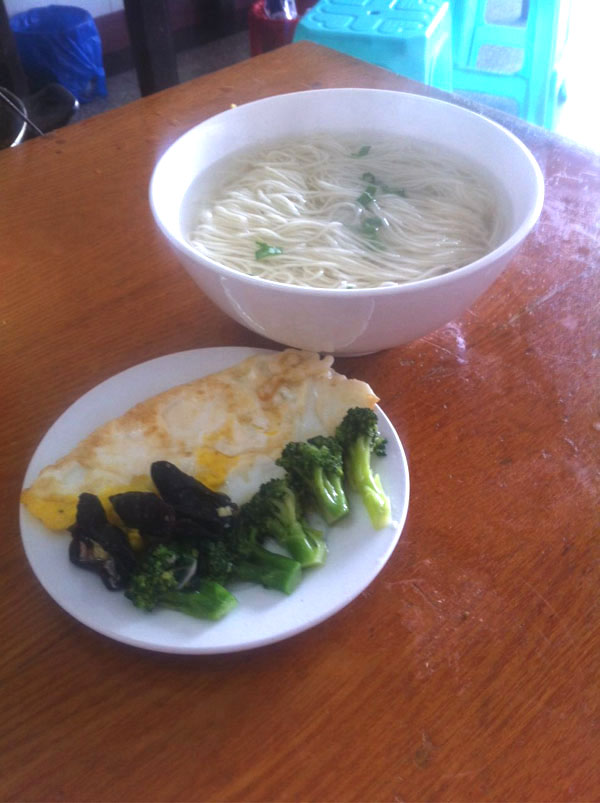 武進人愛吃面,已經(jīng)是人盡皆知。而說起武進人最愛吃哪種面,估計十個中有八個會說腸腸面。位于禮嘉鎮(zhèn)上的新八佰碗面館,就是以腸腸面在武進面界擁有了眾多粉絲。 比起大部分武進的家常面館,新八佰碗面館的門面還是挺大的,寬敞的廳堂里擺放著近10張桌子。中午11點不到,由于還沒到飯點,店里的客人并不多。著裝清爽的老板娘顧紅梅正在后面的灶間里忙著炒菜!澳銊e看現(xiàn)在我們店里沒人,再過半小時,人馬上就多起來了。早上9點前,好多人都是站著把面吃完的。” 顧紅梅坦言,面館有如此好的生意,著實有點意外,但也在情理之中。 新八佰碗面館的前身也是一家面館,但是因為種種原因,最終在3年前關門大吉!捌鋵嵜骛^的市口很不錯,但我接手的時候,前任老板跟我說,一天只能做20斤面的生意。”雖然壓力很大,但顧紅梅表示,從一開始她就對面館充滿信心,“我一直覺得只要用心,沒有做不好的事。” 新八佰碗面館的面是老武進的做法,一碗面,三種做法,要么紅湯、要么白湯,還有紅湯拌面,翻花樣的是上面的澆頭。每天清晨3點半,顧紅梅就會準時到店里,首先是煮湯底!拔覀兠骛^的湯料頭很足,用大骨頭、老母雞、開洋等足足燉夠3小時!苯又,就是做各種澆頭。由于一向擅長做菜,因此有很多澆頭都是顧紅梅親自掌勺。新八佰碗面館的澆頭,除了味美,量也是足得讓食客們直呼“老板要虧本了”!熬湍梦溥M人最喜歡吃的大肉來說,足足是別人店里的兩倍大。每次我切肉的時候,我老公總在旁邊念叨,大點,再大點!鳖櫦t梅笑著說道。 早上6點不到,面館就會迎來第一批客人。雖然店里雇了工人,但顧紅梅只要有空,都會搶著收拾碗筷!案鶕(jù)客人們吃的量,我就知道面合不合他們的口味了。有時看到客人剩的特別多,我就會拉著問是不是不好吃。只要客人們提到的意見,我肯定一字不落地記下來,然后在以后的制作過程中一一改進。對于很多武進人而言, 一碗面,裝載的是小日子、小樂活,所以我必須把面做好吃嘍。”顧紅梅的如此用心,不由讓記者豎起了大拇指。 就這樣,一開始的20斤面量,一個月后就增加到了40斤,而現(xiàn)在最忙的時候,一天要用掉近100斤面。 說起招牌面,顧紅梅指了指墻上的菜單,“喏,寫在那呢,腸腸面!泵媸羌毭妫嶂袔,湯底濃油赤醬,看似很咸,其實不然,回味恰到好處。大腸處理得很干凈,腸腔里的油花幾乎都被去除了,糯糯的卻不見肥,再加一塊素雞或荷包蛋,武進人喜歡的味道,這一碗面里就齊全了。
