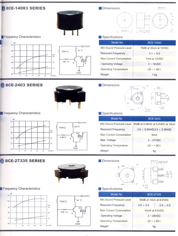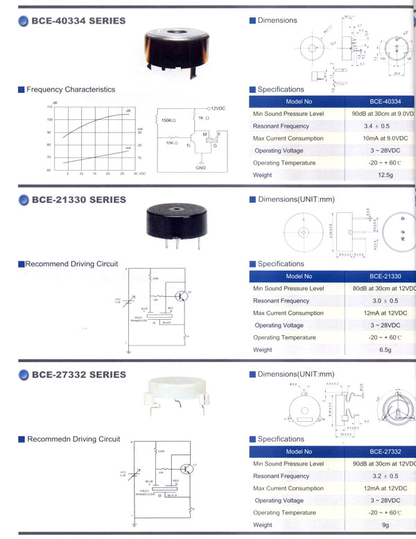 本公司生產(chǎn)的蜂鳴器結(jié)構(gòu)緊密,材質(zhì)輕,功耗低,質(zhì)量可靠,使用方便,價(jià)格合理,采用最新技術(shù)電子元件。廣泛應(yīng)用于打印機(jī)、電話、定時(shí)器、尋呼機(jī)、洗衣機(jī)、取款機(jī)、報(bào)警器、電腦終端機(jī)、復(fù)印機(jī)、電唱機(jī)、汽車及摩托車電子設(shè)備、空調(diào)設(shè)備、萬(wàn)用表、遙控裝置、各種安全裝置以及便攜或電池式迷你型裝置。