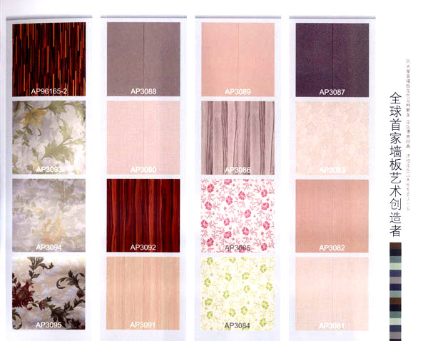 常州愛普裝飾材料有限公司位于美麗富饒的江蘇省常州市,是一家專業(yè)從事墻板設計與生產的企業(yè)。年生產墻板300萬平方米。"愛普墻板"是我公司生產的一種新型墻面裝飾材料,產品由人造金剛石耐磨層、三聚氰胺裝飾紙、EO級HDF材料、高檔防潮平衡紙,采用先進的德國生產設備,通過一流的生產工藝--一次性熱壓技術壓貼成型。具有環(huán)保、耐磨、防刮擦、防潮、阻燃、隔音、保溫、抗沖擊、抗污等優(yōu)點。經中華人民共和國專利認定為 專利產品(專利號:ZL200820127448.X),為國際首創(chuàng),其知識產權受國家法律保護。 愛普墻板經建科院權威部門檢測,其所有物質性能指標均符合國家建材行業(yè)標準,產品遠銷美國、加拿大、澳大利亞、土耳其、俄羅斯、馬來西亞等國家和地區(qū),以其優(yōu)秀的產品與新穎的設計贏得了廣泛贊譽,經歷五年的發(fā)展,愛普裝飾材料公司已成為墻板行業(yè)的領軍企業(yè)。 公司以"開拓、競爭、誠信、服務"的企業(yè)精神,"本著質量第一、用戶第一"的原則,依托先進的工藝裝備、雄厚的技術力量,完善的企業(yè)管理制度,竭誠為用戶提供優(yōu)質的產品與良好的服務。