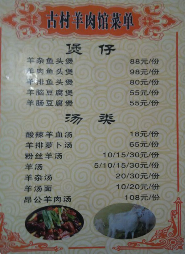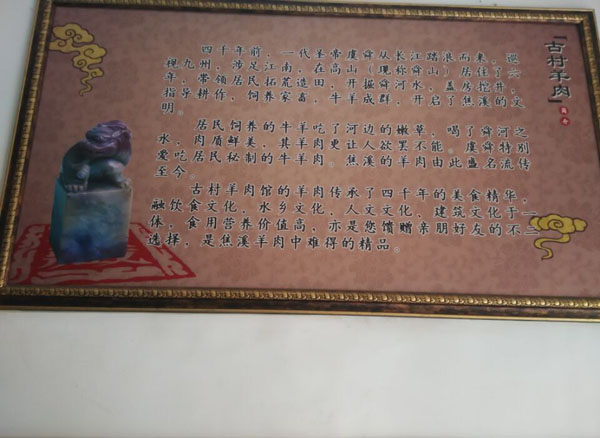 常州市武進(jìn)鄭陸焦溪古村羊肉館選用放養(yǎng)的上等山羊,采用獨(dú)特的配方精心煮制而成,其特點(diǎn):湯呈清色,肉質(zhì)細(xì)膩,味道純正,不腥不膻,色香味俱全。絕對(duì)不含任何食品添加劑,是純綠色食品。特別在冬季,有滋補(bǔ)、祛寒、健身養(yǎng)胃之功效! 在傳統(tǒng)羊肉湯基礎(chǔ)上,力求肉鮮湯鮮的制作原則,用火、刀工、器皿等諸多方面加以改進(jìn)。現(xiàn)宰活羊,以?xún)?yōu)質(zhì)的山羊?yàn)橹鳎虿怀臧臊g的捶羯蒙羊膻羯為標(biāo)準(zhǔn)。羊湯的主要技術(shù)就是羊肉湯的獨(dú)特配方,羊湯技術(shù)和羊湯的做法完全是兩碼事,羊湯技術(shù)是純正的羊湯的原始積累技術(shù),也就是包括純正羊肉的配方,羊湯做法如放入羊骨頭、羊肉等,而天然居羊湯之所以出類(lèi)拔萃,因其羊的湯呈清色狀,鮮潔爽口,不腥不膻,不粘不膩,獨(dú)具特色。用新鮮羊骨、羊肉、羊肚、羊頭、羊腸等羊下水,加以傳統(tǒng)香料配方熬制。由于湯呈清色,喝起來(lái)香而不膻,入口鮮潔爽口、熱燙濃香,營(yíng)養(yǎng)豐富。