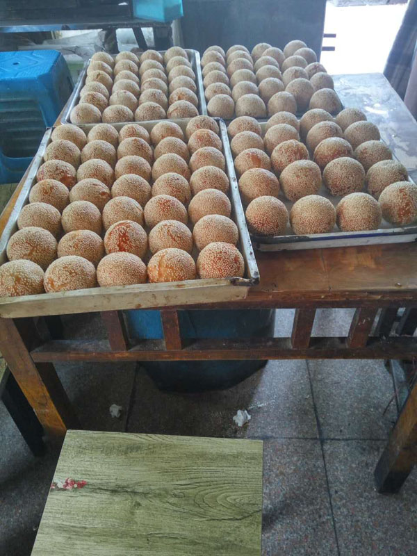 “做大麻糕太辛苦,半夜爬起來準(zhǔn)備熱爐子、和面、做餡,年輕人吃不了這苦,15年我都沒請人,和老婆一起打過來的。”夏亞寶指著手臂上的燙傷的痕跡說,能堅持烤桶制作大麻糕的真心不多了。夏亞寶的烤桶是自制的,爐心常州買不到,他托人從無錫買來,15年前85元一個,前年漲到150元!翱就暗臓t心其實就是以前船上人家用的行爐”,去底后鑿個洞,然后外面加上隔熱材料,最后貼上鐵片”。