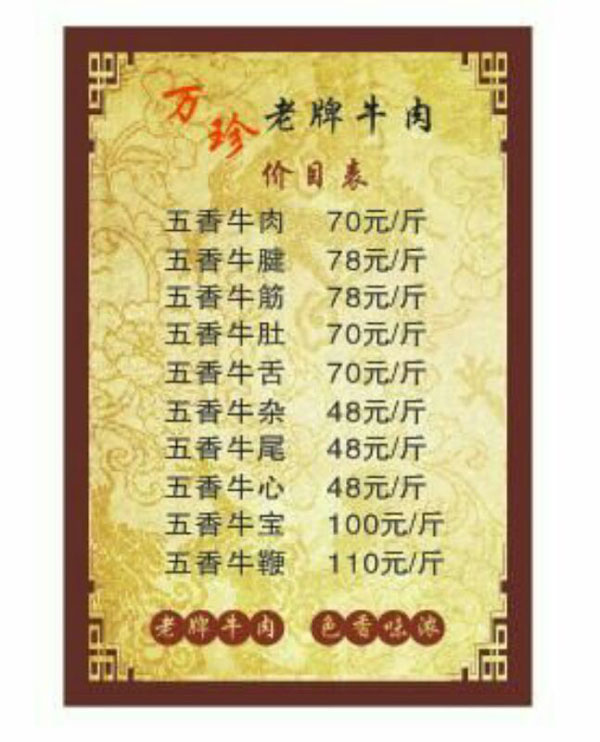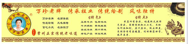 老牌牛肉創(chuàng)始人徐德洪始于1935年在常州東大街八仙浴室門口,以挑擔(dān)擺攤賣牛肉為生,1952年移至縣直街開設(shè)了徐德洪牛肉店。1958年公私合營(yíng)改名為四時(shí)興牛肉店。文化大革命后又改名為立新牛肉店,1979年退休。他一生加工經(jīng)常五香牛肉,選料精良,工藝講究,配方獨(dú)到,牛肉色香味濃,味道純正鮮美,百吃不厭。長(zhǎng)期以來(lái),深得廣大顧客的一致好評(píng)和喜愛,成為常州城家喻戶曉的老字號(hào)。 徐萬(wàn)珍乃徐德洪之女,傳承父業(yè),秉承父親精益求精的優(yōu)良傳統(tǒng),于1997年在同濟(jì)橋開設(shè)了萬(wàn)珍老牌牛肉店,經(jīng)營(yíng)至今二十載,嚴(yán)格選料把關(guān),遵循傳統(tǒng)加工工藝,不加工任何添加劑,繼承和保留了老牌牛肉的傳統(tǒng)特色和傳統(tǒng)老味道,色香味濃,原汁原味,得到了更多新老顧客的青睞。