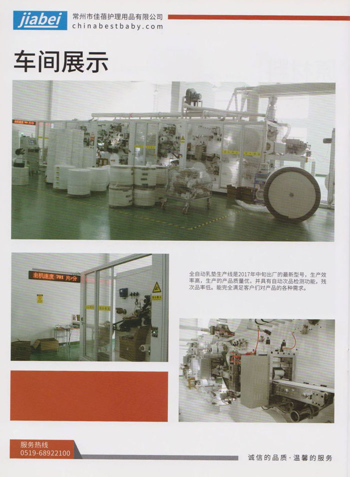 常州市佳蓓護(hù)理用品有限公司是一家專業(yè)從事開發(fā)、生產(chǎn)、銷售并具備自營出口的外向型企業(yè),主要生產(chǎn)“一次性防溢乳墊“,以質(zhì)量穩(wěn)定,柔軟親膚而深受客戶和消費(fèi)者青睞。本公司產(chǎn)品從生產(chǎn)到包裝成品嚴(yán)格執(zhí)行無菌生產(chǎn)標(biāo)準(zhǔn)化流程,并和設(shè)備生產(chǎn)廠家合作開發(fā)了兩條從進(jìn)料、生產(chǎn)、檢測(cè)、滅菌、成品包裝的無菌生產(chǎn)線,從而實(shí)現(xiàn)了真正意義上的無菌生產(chǎn)標(biāo)準(zhǔn)化。