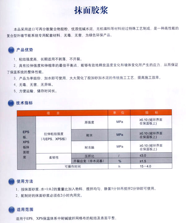 常州市福康新型建材有限公司是以研制開(kāi)發(fā)、生產(chǎn)、銷(xiāo)售、施工、技術(shù)服務(wù)為一體的化學(xué)建筑材料的專業(yè)企業(yè),通過(guò)與歐洲著 名建筑材料公司和國(guó)內(nèi)權(quán)威科研機(jī)構(gòu)合作,并聘請(qǐng)國(guó)家級(jí)專家為技術(shù)顧問(wèn),開(kāi)發(fā)出適合我國(guó)市場(chǎng)的?礒PS、XPS及聚苯顆粒外墻外保溫節(jié)能系統(tǒng)。 公司的生產(chǎn)線全部采用國(guó)內(nèi)先進(jìn)的電腦控制自動(dòng)化設(shè)備,配備了專業(yè)的實(shí)驗(yàn)中心,并且采用進(jìn)口的可再分散乳膠粉為基料,確保?低鈮ν獗毓(jié)能系統(tǒng)具有性能優(yōu)異、安全可靠,綠色環(huán)保、適用性強(qiáng)的高品質(zhì)特點(diǎn)。 公司開(kāi)發(fā)的\'?低鈮ν獗叵到y(tǒng)\'被列為江蘇省科技成果推廣項(xiàng)目。整個(gè)生產(chǎn)流程依照質(zhì)量體系的要求,實(shí)行嚴(yán)格的監(jiān)控和檢測(cè),為生產(chǎn)優(yōu)質(zhì)產(chǎn)品提供保證。高品質(zhì)的?低鈮ν獗叵到y(tǒng),提供從熱工設(shè)計(jì)、產(chǎn)品開(kāi)發(fā)、生產(chǎn)銷(xiāo)售及工程施工全程服務(wù)的一體化解決方案。 公司本著“綠色環(huán)保、節(jié)約能源、造福人類(lèi)”的理念。用我們一流的產(chǎn)品和優(yōu)秀的服務(wù),打造出一個(gè)個(gè)節(jié)能康居示范工程,為人類(lèi)營(yíng)造出舒適健康的居住環(huán)境。我們?cè)笧橹袊?guó)節(jié)能事業(yè)的發(fā)展積極努力,更上一層樓。 公司組建高效的生產(chǎn)經(jīng)營(yíng)管理模式,設(shè)立專業(yè)技術(shù)服務(wù)機(jī)構(gòu)。配備售后的優(yōu)質(zhì)服務(wù)。實(shí)行原材料、運(yùn)輸、安裝一條龍服務(wù)。經(jīng)本公司施工之后,貴公司可以直接批涂料、裝門(mén)窗、貼瓷磚,保證絕無(wú)任何質(zhì)量問(wèn)題。