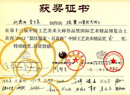公司榮譽介紹: “2009年常州市旅游商品創(chuàng)新設計大賽”,“覽盡千荷”綠檀雕刻梳榮獲三等獎; “2011年常州市旅游商品創(chuàng)新設計大賽”,“彩印工藝梳-我們的年代(80)”榮獲二等獎。 “2011年中國包裝創(chuàng)意設計大賽“,虞美人彩印梳篦系列包裝獲得一等獎; “2011年中國包裝創(chuàng)意設計大賽”,虞美人筷子系列包裝獲得三等獎; “2011創(chuàng)意中國.第五屆設計藝術大獎賽”,虞美人系列包裝獲得三等獎; “2011首屆中國(無錫)國際文化藝術博覽會”,漆藝對梳《喜玫瑰》獲得“藝博杯“銅獎。 “第十三屆中國工藝美術大師作品暨國際藝術精品博覽會”, 漆藝梳《報喜鳥》榮獲2012“儒士儒家•百花杯”中國工藝美術精品獎優(yōu)秀獎 “第十三屆中國工藝美術大師作品暨國際藝術精品博覽會”, 虞美人《渾然天成》榮獲2012“儒士儒家•百花杯”中國工藝美術精品獎金獎 “2012江蘇省工藝美術精品大獎賽”,虞美人《S型梳》喜獲“藝博杯”銀獎 “第十四屆中國工藝美術大師作品暨國際藝術精品博覽會”, 虞美人工藝梳《新型十二星座梳》榮獲2013“國信•百花杯”中國工藝美術精品獎優(yōu)秀獎 “2013【藝博杯】江蘇省工藝美術精品大獎賽”,虞美人《萬事如意系列》喜獲“藝博杯”銀獎 “2013江蘇省工藝美術新人新作成果展作品大獎賽”,虞美人《壺(福)的藝術》喜獲“藝博杯”入圍獎 2013年度江蘇省“蘇商領袖峰會”,常州市卓尚飾品有限公司榮獲最具成長性企業(yè)獎 常州市卓尚飾品(虞美人)有限公司總經(jīng)理李衛(wèi)東榮獲“常州創(chuàng)意產(chǎn)業(yè)協(xié)會2013年底慈善獎榮譽” 常州市卓尚飾品有限公司榮獲薛家鎮(zhèn)人民政府2013年度“創(chuàng)新創(chuàng)優(yōu)”獎 常州市卓尚飾品有限公司榮獲薛家鎮(zhèn)人民政府2013年度“銷售業(yè)績”獎 2014中國(深圳)國際文化產(chǎn)業(yè)博覽交易會,劉燕西、李衛(wèi)東、段筆耕<十二星座系列>獲得“中國工藝美術文化創(chuàng)意獎”銀獎 2014中國(深圳)國際文化產(chǎn)業(yè)博覽交易會,徐德鴻、李衛(wèi)東、段筆耕《漆彩人生系列》獲得“中國工藝美術文化創(chuàng)意獎”銅獎 文化創(chuàng)意大獎賽“紫金獎” ,有余(魚)系列梳篦產(chǎn)品獲得了優(yōu)秀獎 2014吟飛杯首屆常州文化創(chuàng)意和設計大賽,虞美人有余(魚)系列梳篦產(chǎn)品榮獲優(yōu)秀設計獎 2014吟飛杯首屆常州文化創(chuàng)意和設計大賽,虞美人“云,月”系列梳篦產(chǎn)品榮獲優(yōu)秀設計獎 2014藝博杯江蘇省工藝美術精品大獎賽,虞美人《梳篦:酒醉的探戈》喜獲銀獎 2014“中國原創(chuàng)•百花杯”中國工藝美術精品大獎賽,虞美人《梳篦-江南風韻系列》喜獲銀獎 常州市卓尚飾品有限公司獲“2014年常州市電子商務協(xié)會2014年度優(yōu)秀會員單位” 2014“虞美人”成為常州市知名商標。