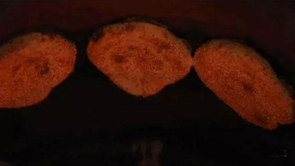 當(dāng)爐火燒得正旺,溫度能高達近300度,沈國平就上場了,赤手空拳,一撈一貼,一秒鐘的功夫,就把麻糕貼到了桶壁上。不過幾分鐘的功夫,麻糕就出爐了。經(jīng)過炭火爐子烤出來的,比一些電烤爐烤出的更香、更脆。