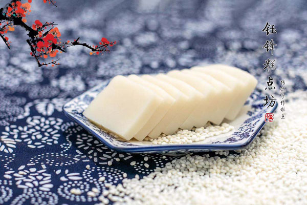 腳踏糕本名“年糕”,按常州周邊地區(qū)的風(fēng)俗習(xí)慣,在春季前夕,各家各戶都要蒸年糕,吃年糕!案狻敝C音“高”,過年吃年糕被賜予“年年高”,一年高一年,鋒吉祥之意,表達這人們對未來美好生活的憧憬和良好的祝愿。今天小編要帶大家的就是一家至今保持著傳統(tǒng)手工制作的鈺鋒糕點坊。   鈺鋒糕點坊位于常州鄭陸鎮(zhèn)三皇廟范家莊,一個比較偏僻的村莊,雖然這家作坊不大,但香糯絲滑,軟糯適中,韌勁十足的腳踏糕吸引了無數(shù)的食客。制作一條腳踏糕要從淘米,浸泡,碾粉,鋪粉,一層一層的鋪下去,需要無數(shù)道制作工序,這些都是店主孫煥公公老周,憑著幾十年的經(jīng)驗,加上店主孫煥從不馬虎的決心!   這“腳踏”也并非赤腳上陣,而是把蒸好的糕倒入早以準(zhǔn)備好的框子里,用布包裹好,上面再用薄膜包好,再蓋上布,再換上專門腳踏的布鞋,踩的時候要勻稱,左右腳要配合好,不然糕會高高低低,不平整,最后再拿蠟燭線拆成一條小長條,再拿帶包裝好,如此又香又糯的腳踏糕就大功告成了。   店主孫煥為了讓更多的人認(rèn)識和了解常州腳踏糕的傳統(tǒng)文化和美食,她在傳統(tǒng)工藝中增加了適合現(xiàn)代文化的多種口味,她在糕里加入南瓜,紫薯,老紅糖,大麥汁,血糯米,核桃,葡萄干,紅棗等食材,做出五顏六色,純天然的口味,深受食客們的喜愛,不管是送人還是自己吃都非常新穎。