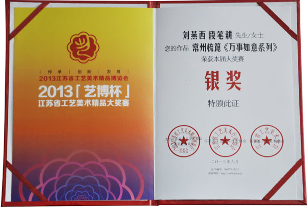 “2013【藝博杯】江蘇省工藝美術(shù)精品大獎賽”,虞美人《萬事如意系列》喜獲“藝博杯”銀獎