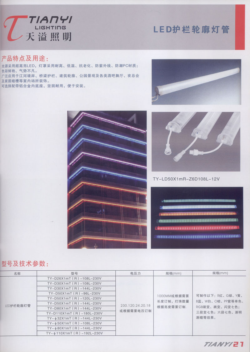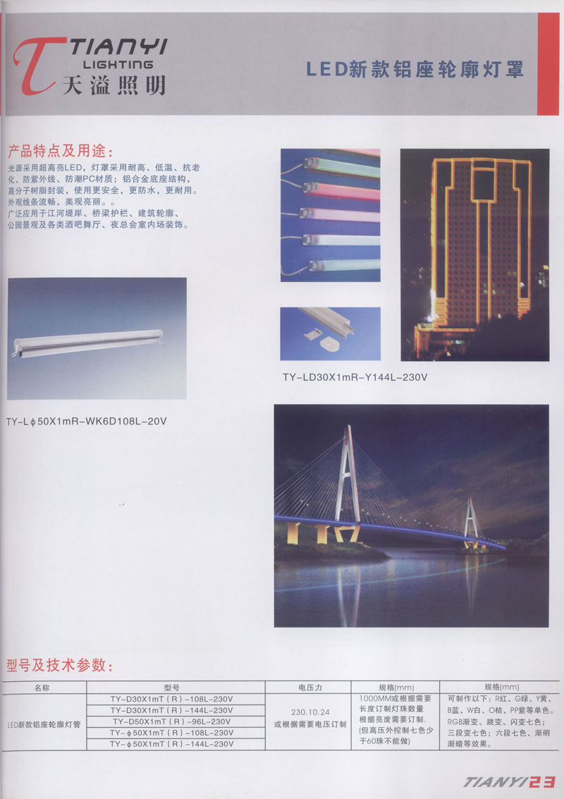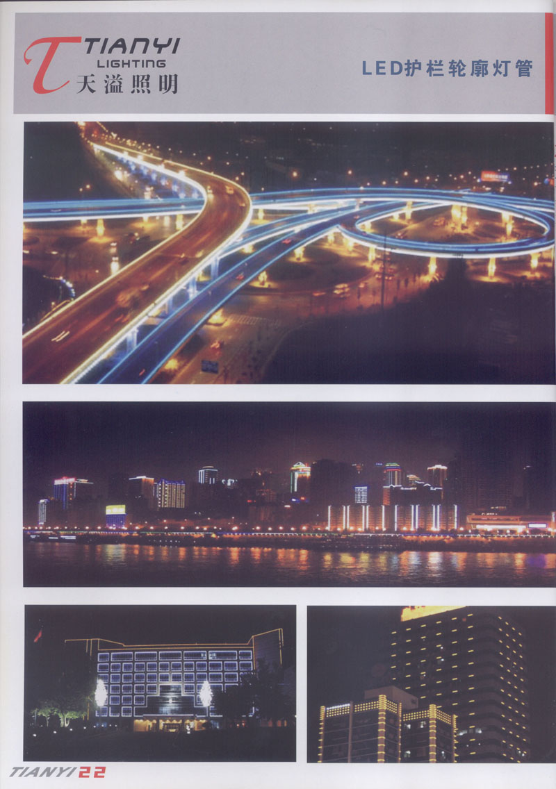 天溢照明是中國領(lǐng)先的專業(yè)從事LED廣告照明裝飾燈具設(shè)計、系統(tǒng)開發(fā)、燈具制造、工程服務(wù)一體的專業(yè)型公司,本公司產(chǎn)品已廣泛應(yīng)用于全國大多數(shù)城市夜景亮化景觀照明、酒店休閑娛樂夜場夢幻燈光、戶內(nèi)外廣告宣傳、建筑及室內(nèi)照明以及家居裝飾等場合。